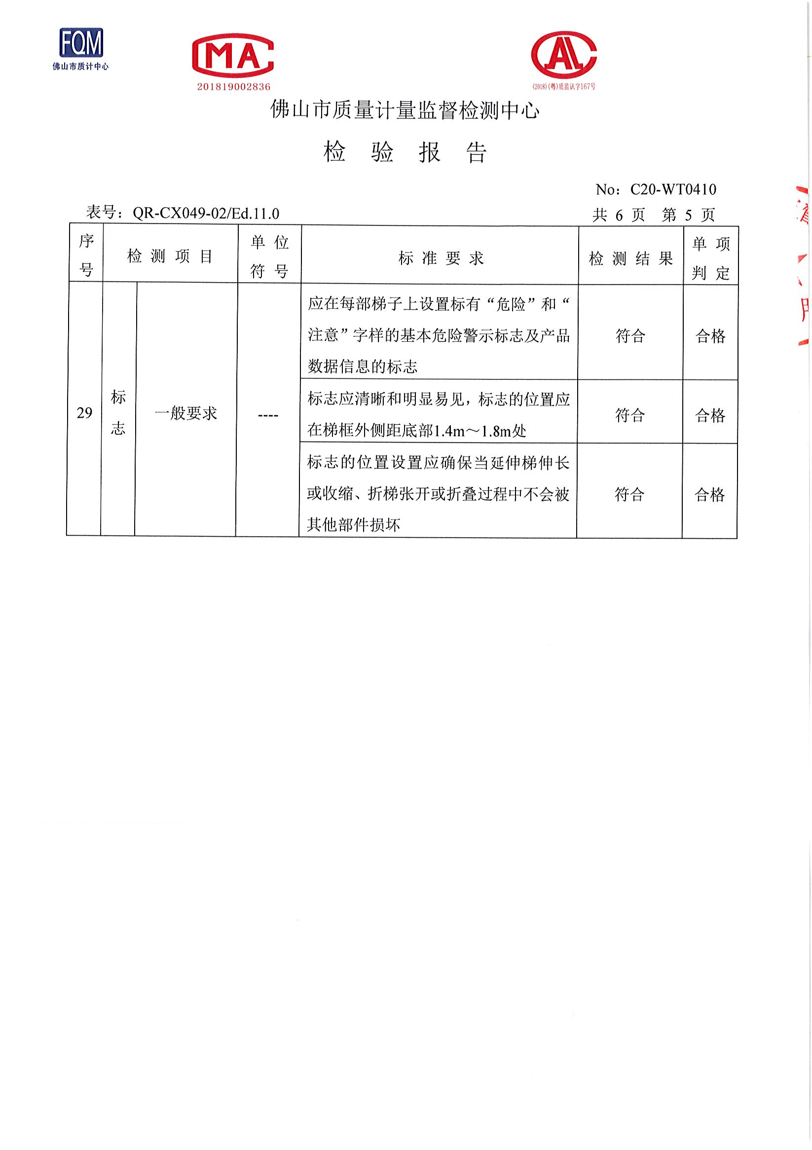 - 創(chuàng)乾人字梯檢測報(bào)告