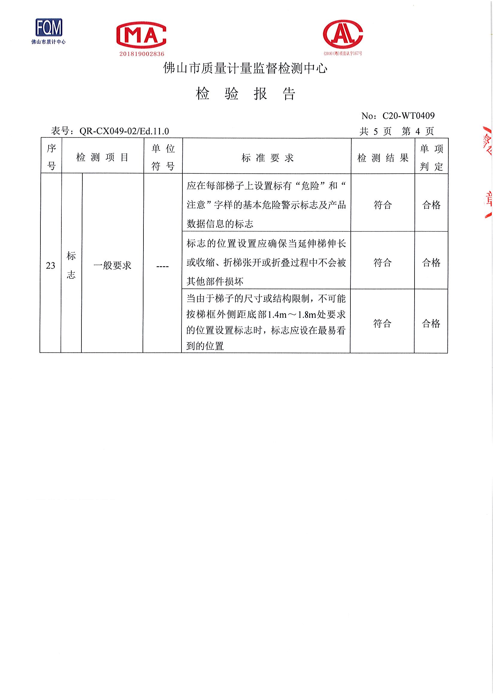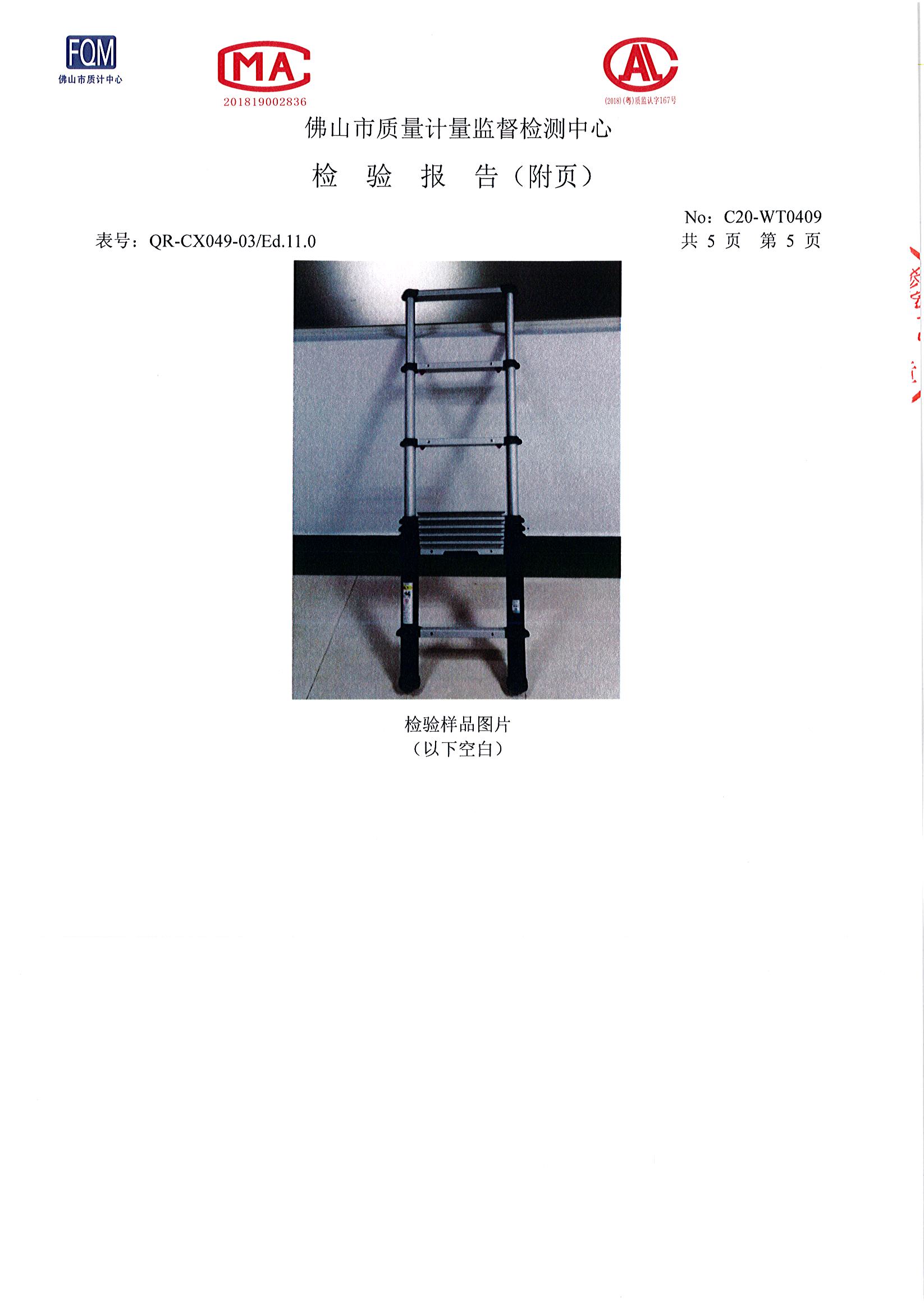 創乾伸縮梯檢測報告-榮譽資質-伸縮梯子|折疊梯子|鋁合金梯子|梯子|廣東創乾梯具有限公司